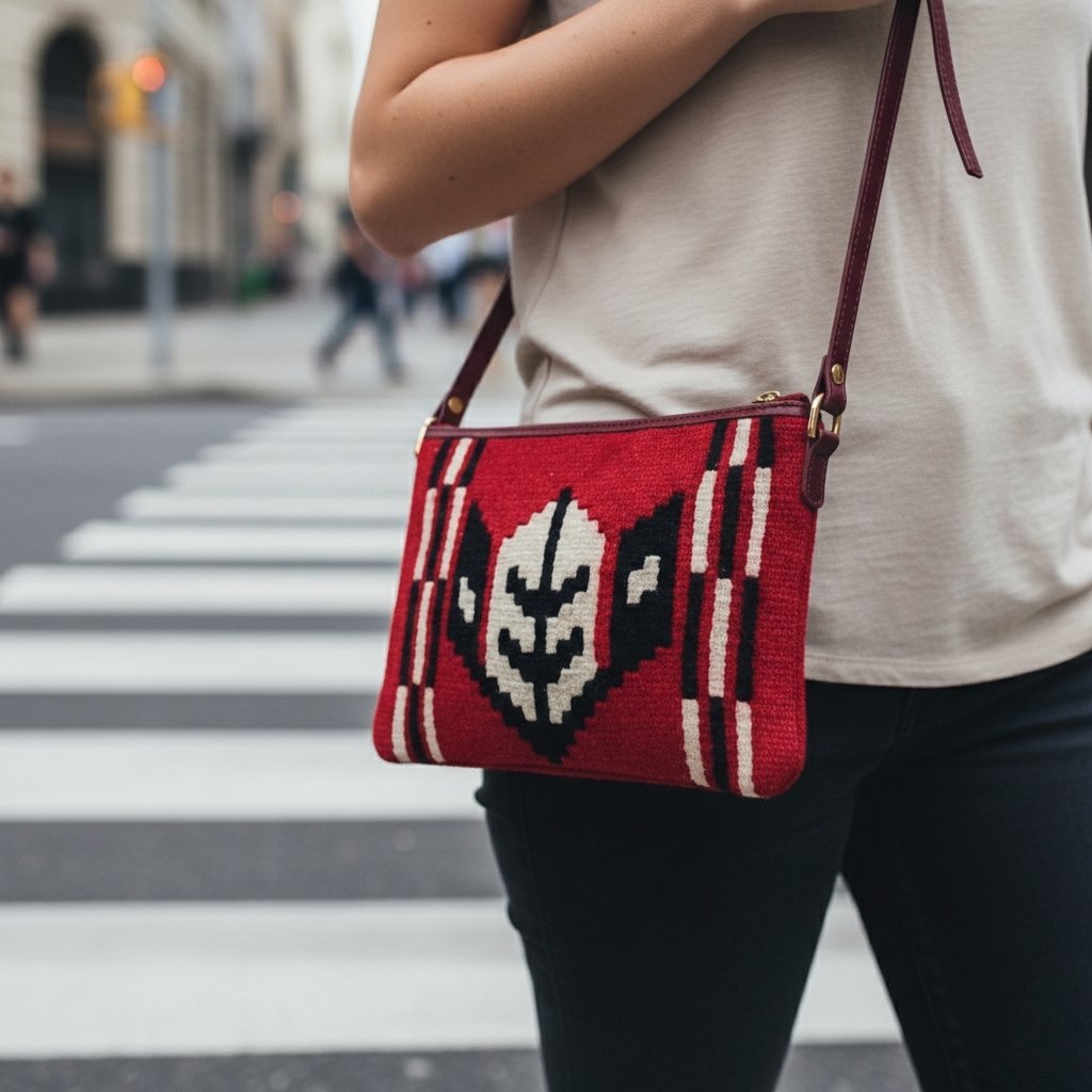This sling bag is crafted entirely from handwoven kilim, celebrating the texture, depth, and character of traditional weaving. A clean leather strap adds contrast and durability, allowing the bag to sit comfortably while maintaining a refined, balanced look. Designed for effortless everyday wear, it carries essentials with ease while telling a story of craft, authenticity, and timeless design.